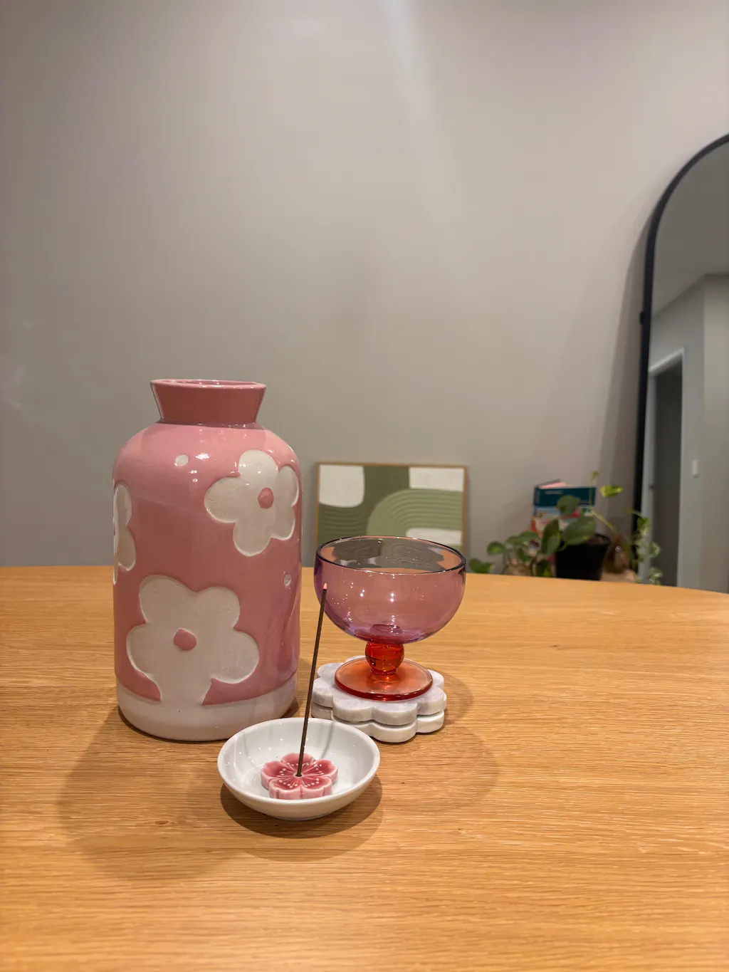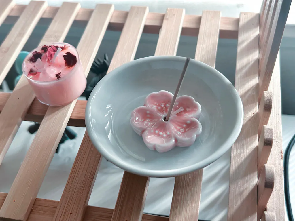 Pink sakura (cherry blossom) incense stand with plate (plate only, incense not included)